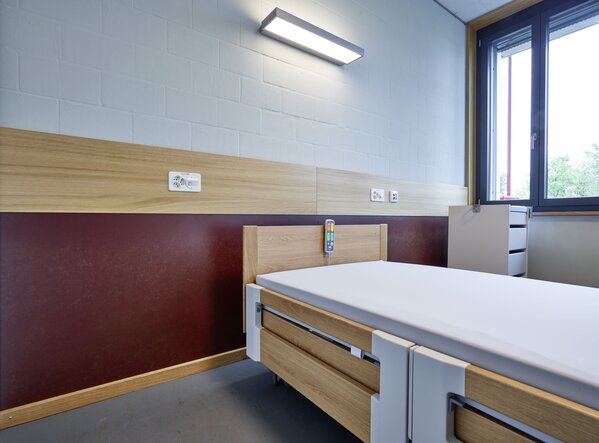 Der Einsatz des strapazierfähigen Schweizer HPL stützt das langfristige und nachhaltige Gedankengut der Einrichtung. Das robuste Material wirkt als stoss- und kratzresistente Wandverkleidung und so individuell wie die Bewohner zeigen sich Möbel- Schrankfronten: Die Argolite Exklusivität «Naturfaser» ist von Platte zu Platte verschieden und jede Platte ein Unikat.