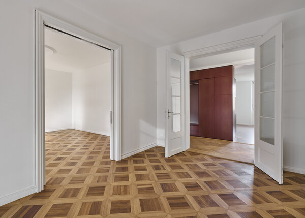 In den 80er Jahren wurde der Wohnungsgrundriss geändert, die Küchen verkleinert. Der heutige Rückbau führt die ursprüngliche Grundrissstruktur zurück. Es entstehen grosszügige Wohnungsgrundrisse mit einem offenen Küchen-/Essbereich. Zudem wird der Küchenbalkon in den Innenhof erweitert.