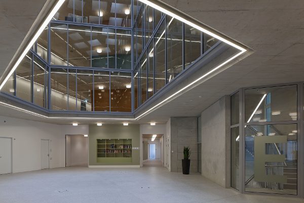 Das neue Wohnheim Mauritiusheim kann sich sehen lassen. Wer das Gebäude betritt, befindet sich sogleich mitten auf einem Lichthof mit einer kunstvollen Decke. Alle Wege und Blicke führen in diesen Lichthof. Und von Diesem kann man in die drei Obergeschosse hochsehen, wobei jedes Stockwerk in einer anderen Farbe gehalten ist. Zudem sind die weissen Schränke in den Zimmer mit Argolite Strato Produkten ausgestattet.
